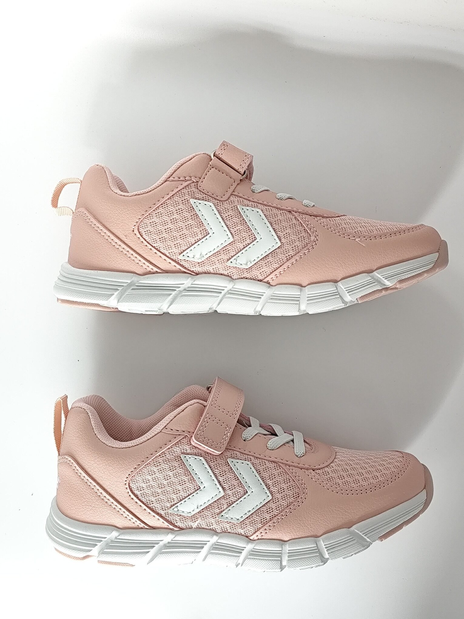 Sportiniai batai mergaitėms: Hummel Speed JR Peach Whip. Kokybiški, lengvi ir patogiai apsiaunami, užsegimas velkro lipdukais. Papildomo komforto suteikia elastinės juostelės. Švelniai rausvos spalvos. Puikus pasirinkimas laisvalaikiui ar sporto būreliams, darželiui, mokyklai.
